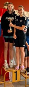 In diesem Jahr waren zwar nur 8 Vereine mit 130 Aktiven bei unserem 29. Sparkassencup der Sparkasse Muldental am Start, dafür aber auf einem hohen Leistungsniveau. Bei den Frauen startete mit Mathilda Dabers von den Anklamer Peenerobben die „Deutsche Meisterin“ über 100 m Rücken. Im männlichen Bereich bestimmte unser Karl v. Thun mit 6 neuen Veranstaltungsrekorden das Wettkampfgeschehen. Nach diesem Schwimmfest steht er bei allen Wettkampfstrecken in der Rekordliste. Auch 3 neue Kreisrekorde des Landkreises Leipzig verbesserte er : 100 m Rücken 0:57,58 ; 200 m Rücken 2:05,68 und 100 m Freistil 0:52,06 min. Neben Karl (Jg. 05) standen auch Henrik Thiele (Jg. 13), Arne Haferkorn (Jg. 16), Amilia Maneck (Jg. 09), Svea Harbich (Jg. 11), Zoe Kobsik (Jg. 12), Nelly Huerta-Stiehl (Jg. 14), Odett Dozsa-Nemeth (Jg. 15) auf dem obersten Siegertreppchen für die „Punktbeste Leistung“. Für 2. und 3. Plätze wurden weitere 17 Aktive unserer Schwimmabteilung ausgezeichnet. Ihren ersten Jahrgangsrekord des Landkreises erschwamm sich Annika Hartwig (Jg. 10) in 1:23,40 min. über 100 m Brust. Bei insgesamt 11 von 19 WK-Strecken erkämpften sich unsere Aktiven die 7 Siegpunkte für die Mannschaftswertung und gewannen mit 114 Punkten vor den Anklamer Peenerobben (87 Pkt.) und dem ST Erzgebirge (78 Pkt.) den Pokal der Sparkasse Muldental. Wir bedanken uns recht herzlich beim Kampfgericht, allen Helfern dieses Schwimmfestes und besonders beim Sponsor, der Sparkasse Muldental, und freuen uns auf das Jubiläumsschwimmfest im nächsten Jahr.