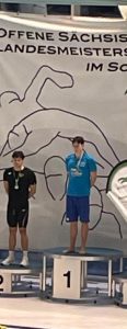 Über 200 m Freistil erkämpfte sich Karl v. Thun den Sachsenmeistertitel. Die Offenen Finals über 200 und 100 m Delphin beendete er mit Platz 2 und 3. Die Jahrgänge 11 und jünger qualifizierten sich für die Jugendfinalläufe. Über 50 und 200 m Rücken erschwamm sich Vincent Stäudte (Jg. 12) jeweils die Bronzemedaille. In 0:29,00 min. und 1:04,78 min. stellte er dabei auch über 50 und 100 m Rücken neue Jahrgangsrekorde des Landkreises Leipzig auf. Mit 0:37,47 min. erkämpfte sich Henrik Thiele (Jg. 13) die Silbermedaille über 50 m Brust in der Jahrgangswertung. Auch bei den Staffelentscheidungen standen unsere Aktiven auf dem Siegertreppchen. Über 4 x 100 m Freistil und 4 x 100 m Lagen gewannen unsere Jungen jeweils Silber, wobei sie sich in der Lagenstaffel nur mit 5/100 sek. dem Leistungszentrum SV Halle beugen mussten. Unsere weibliche 4 x 100 m Lagenstaffel erkämpfte sich Bronze. Im Wettkampfablauf zeigten sich aber auch Reserven, die unsere Schwimmer bis zu den überregionalen Meisterschaften korrigieren und verbessern müssen.