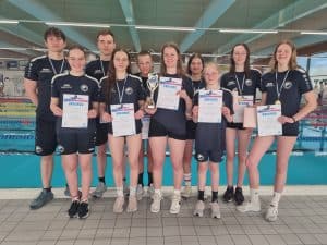 In diesem Jahr stand am Sonnabend noch ein Wettkampf im Programm, der „Anklamer Frühlingssprint“. Bei den 40 Starts erschwammen sich unsere Aktiven 28 x Gold , je 4 x Silber und Bronze und belegten in der Mannschaftswertung Platz 3. Annika Hartwig (Jg. 10) verbesserte über 50 (0:37,98) und 100 m Brust (1:24,54) jeweils die Jahrgangsrekorde des Landkreises Leipzig. In der Mehrkampfwertung nach der 1000 Punktetabelle des DSV standen 5 Sportler unseres SV 1919 Grimma auf dem obersten Treppchen.